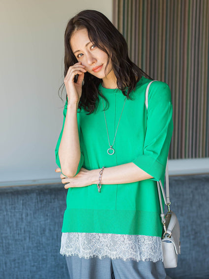裾レーススムースカットソー