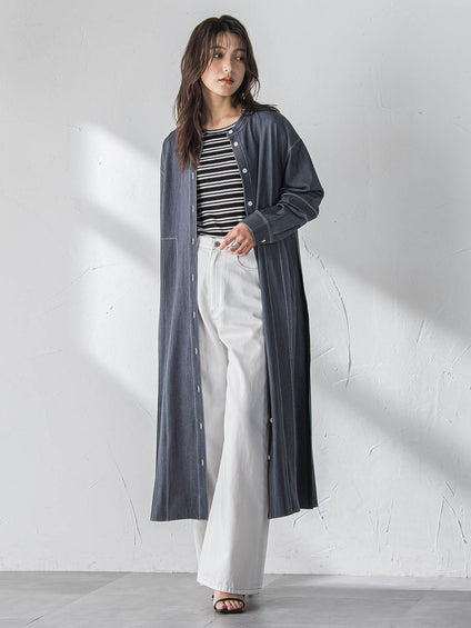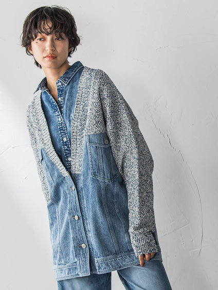 デニムドッキングニットカーディガン≪洗濯機で洗える≫