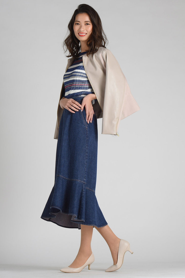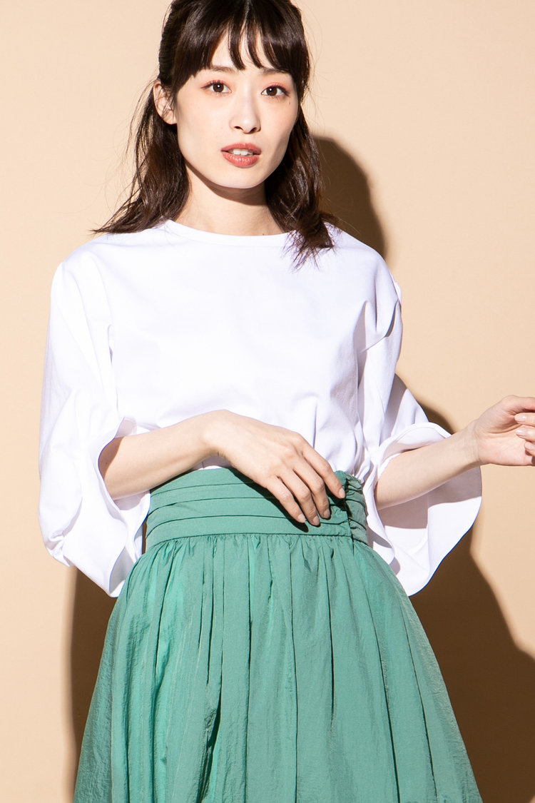 袖コンシャスなトップスを引き立てるためにも、ボトムはなるべくシンプルを意識するのがポイント。女性らしさに拍車をかけるスカートや、大人上品なテーパードパンツなどがおすすめです。
