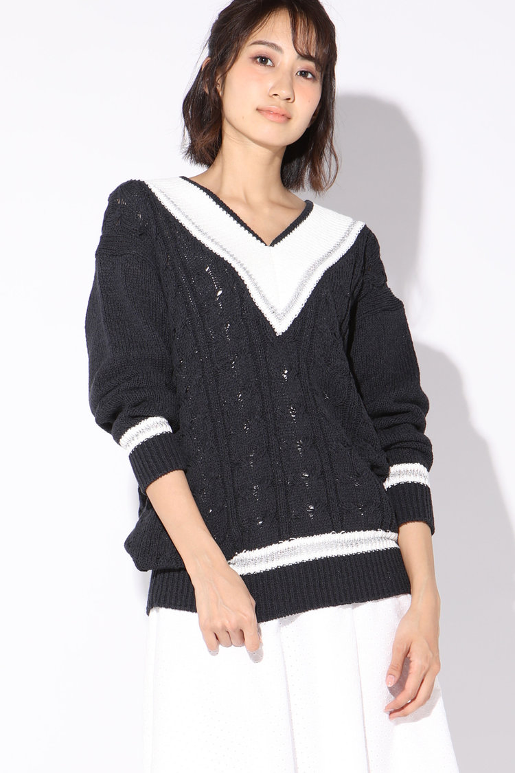 そんなVネックトップスは、よりVのラインを強調できるデザインのものを選ぶのがおすすめ。