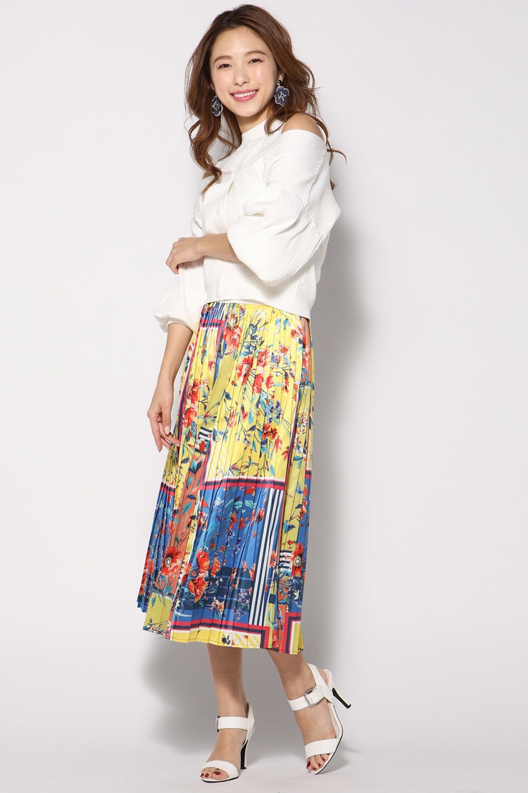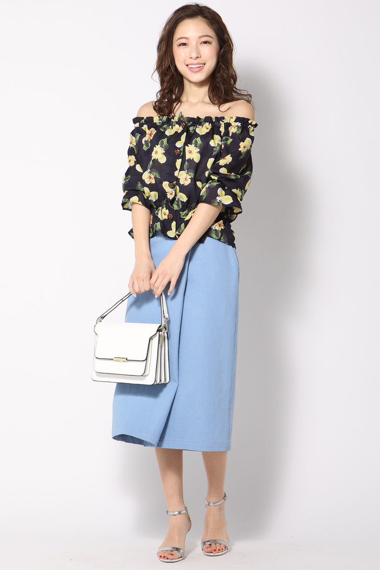 エレガントなオフショルトップスを選んで丸顔さんの可愛らしい印象から、大人っぽいイメージにシフトチェンジを狙いましょう。