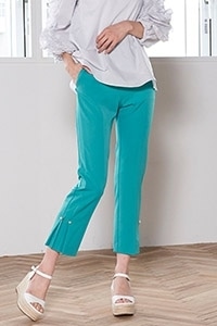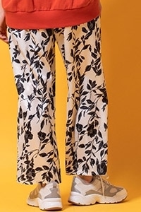 モード&カジュアルな着こなしが好きな人におすすめなのが、ボタニカル柄のストレートパンツ。植物と花がシャープにデザインされていて、甘い花柄が苦手な人でも履きやすく、持っているだけでコーデの幅が広がります。生地自体にほのかな光沢があるから、存在感もたっぷり。パンツの存在感を活かすなら、シンプルなトップスとの合わせがおすすめ。