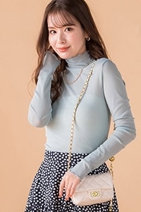 袖のサイドからチラ見えするレースやパールボタンが可愛いニットには、可憐なパステルブルーのマーガレット柄スカートがお似合い。リアルなマーガレット柄なので、大人っぽく着こなせます。スカートのウエストゴムはラメ入りで、キラキラ感がさりげないアクセントに。シャイニーな厚底サンダルを合わせれば、春にぴったりなフェミニンスタイルの完成です。