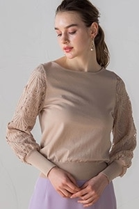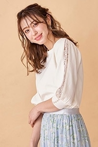 袖に透け感のある花柄レース生地を使用したブラウスは、華やか&涼しげな雰囲気が魅力。春から初夏にかけてのコーデで活躍してくれます。ハリ感のある生地なので、大人っぽく着られるのもうれしい。センタープレス入りのフレアパンツやヒールパンプスと合わせれば、上品&きれいめなフェミニンスタイルが楽しめます。