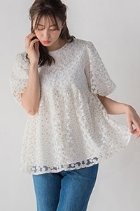 刺繍で花柄を表現したトップスは、裾部分のカットワークが美しい逸品。甘すぎないのに華やかで、大人の女性だからこそ着こなしやすいアイテムです。ウエストにはリボンがついていて、フロントで結んでも、後ろで結んでも可愛い。デニム風のパンツやカラーパンプスと合わせれば、遊び心たっぷりでおしゃれな花柄コーデに仕上がります。