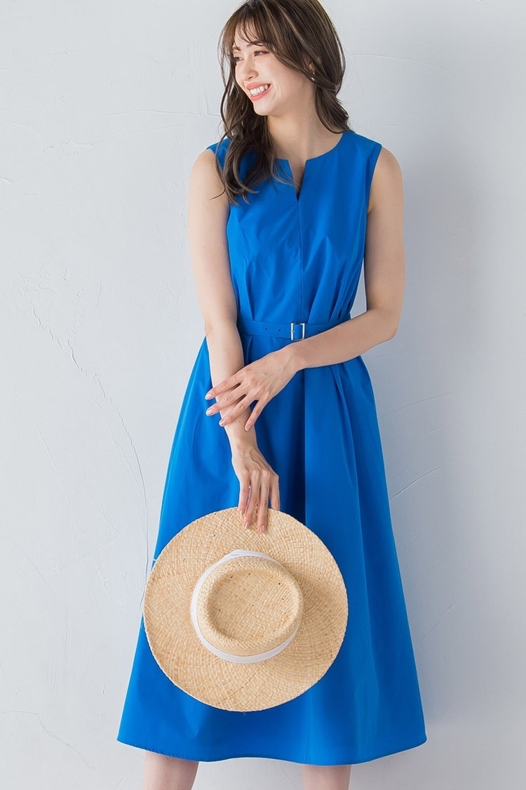 夏のオルチャンスタイルに欠かせないのが、フェミニンなノースリワンピ。フィット&フレアの女性らしいシルエット、鮮やかなピンクカラーで、華やかな夏コーデが楽しめます。ウエストベルトのおかげでスタイルアップして見えるのも◎。サンダルやかごバッグで夏らしいムードを演出して。