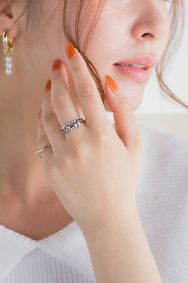 春夏のプリーツスカートコーデには、つややかなアクセサリーがぴったり。シンプルなデザインもいいけれど、せっかくなら遊び心のあるノット(結び目)デザインのリングを取り入れてみて。悪目立ちしないのに存在感たっぷりなリングで、春夏コーデをおしゃれに格上げしてくれます。リングは1つだけでもいいけれど、他のリングを組み合わせたり、細めのリングと重ね付けしたりするのもおすすめ。手元にきらめきが加わることで、華やかな印象になりますよ。