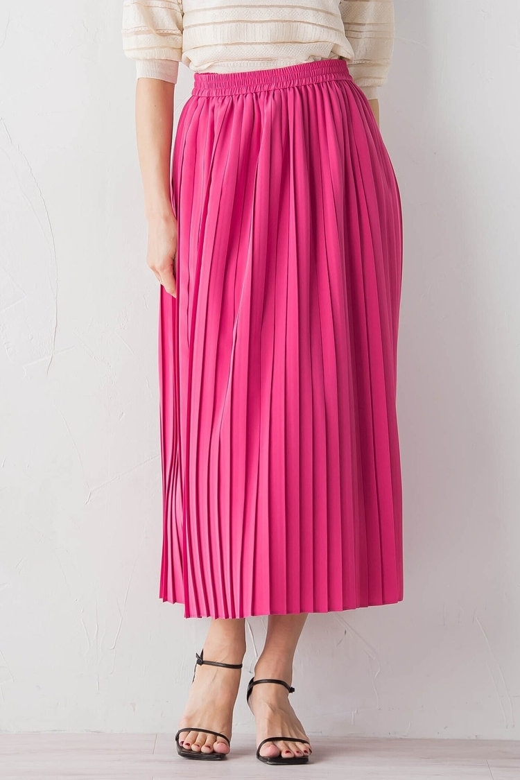 カラーアイテムが豊作な今年は、ビビッドなピンクに要注目!淡いピンクよりも元気な印象で、かつトレンド感たっぷりの着こなしが楽しめますよ。大人女子には、ビビッドピンクのプリーツスカートをメインにしたコーデがおすすめ。広がりすぎない落ち感のある素材なので、大人っぽく上品な雰囲気で着られます。ビビッドピンクのスカートを主役にするときは、トップスや靴の色を抑えめにすると◎。落ち着いたネイビーを選べば、大人っぽい雰囲気のコーデが楽しめるでしょう。さらに、エレガントさを出したいときは、総レース素材のトップスを合わせてみて。
