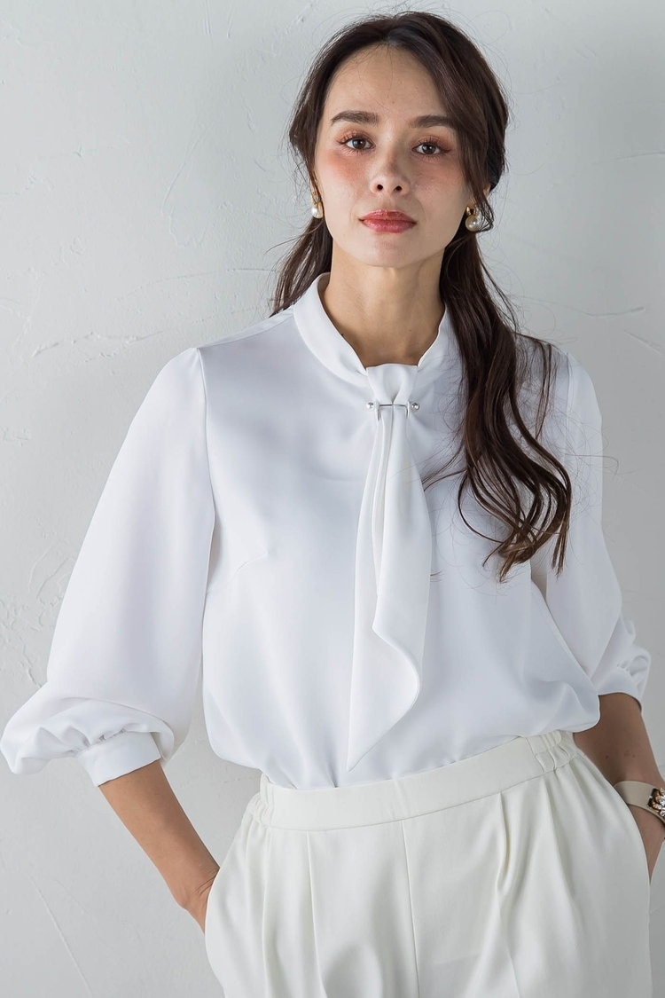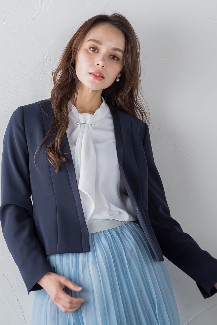 フェミニン派の春夏コーデにおすすめなのが、ロイヤルブルーのプリーツスカート。はっきりした色合いながらも、上品でさわやかな着こなしが楽しめます。細かなプリーツのスカートを選べば、カジュアルになりすぎずエレガントなスタイリングができるでしょう。プリーツスカートに合わせるトップスは「無地」もいいけれど、ドット柄も好相性。トップスに着たブラウスは、大きめのドットがポップな印象。胸元のボウタイもチャーミングです。透け感のあるラメ糸入りの生地を使用しているから、子どもっぽくならず大人らしさを感じるコーデが楽しめるのもGood。