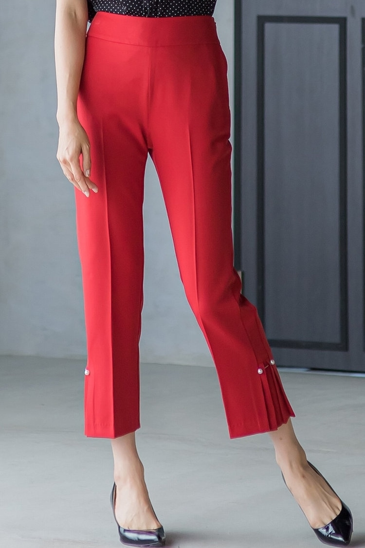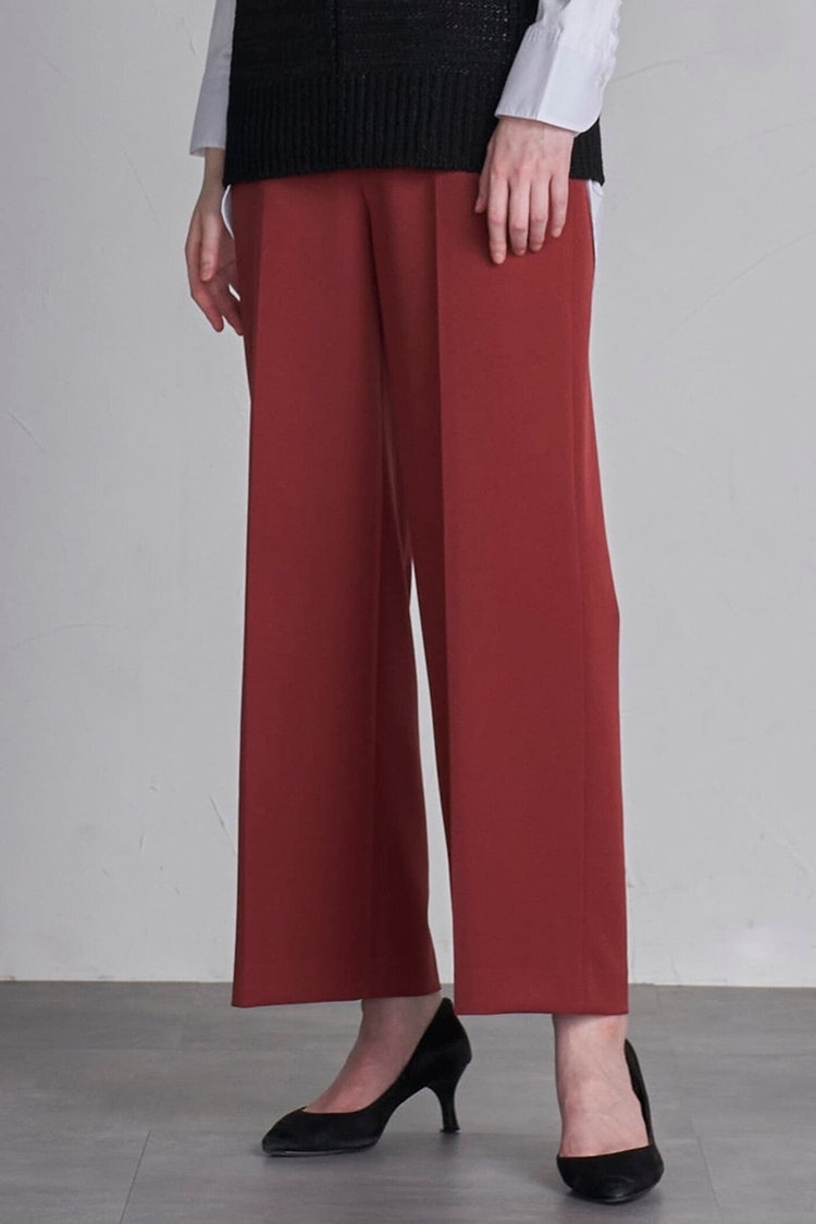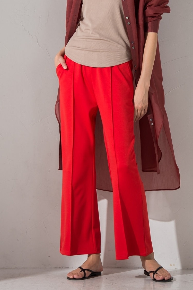 赤ニット×デザインワイドパンツの大人女子コーデ