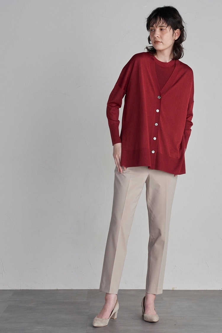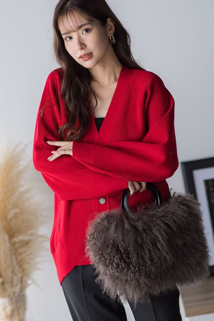 秋のトレンドカジュアルには、カッコいい女性がまとうルージュのような赤カーデを主役に!ゆるっとしたシルエットやざっくりとした編地がほどよくカジュアルで、抜け感のあるスタイリングが楽しめます。大人っぽく着こなしたいときは、インナーやパンツを黒で統一し、シンプルにまとめるのがポイント。ブラウンのショートブーツやもこもこのファーバッグで、秋冬らしいエッセンスをプラス。カジュアルながらもきれいめなコーデに仕上げて。