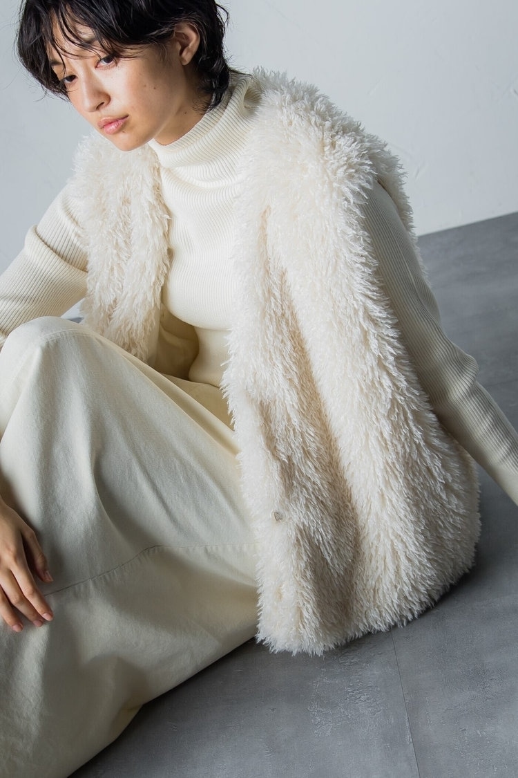 シンプルなリブタートルニットは、パンツ、スカート、ワンピースのレイヤードなどいろいろなコーデに活躍してくれる便利なアイテム。クラシカルなコーデがトレンドの2022年冬も、引き続き出番が多くなりそう。この冬おすすめなのが、トレンドの「ファーベスト」を合わせたコーデ。トップス、ベスト、スカートや小物をすべてホワイトで統一すれば、ワンランク上の大人女子コーデに。おしゃれして出かけたい冬の女子会でも、一目置かれること間違いなしです。