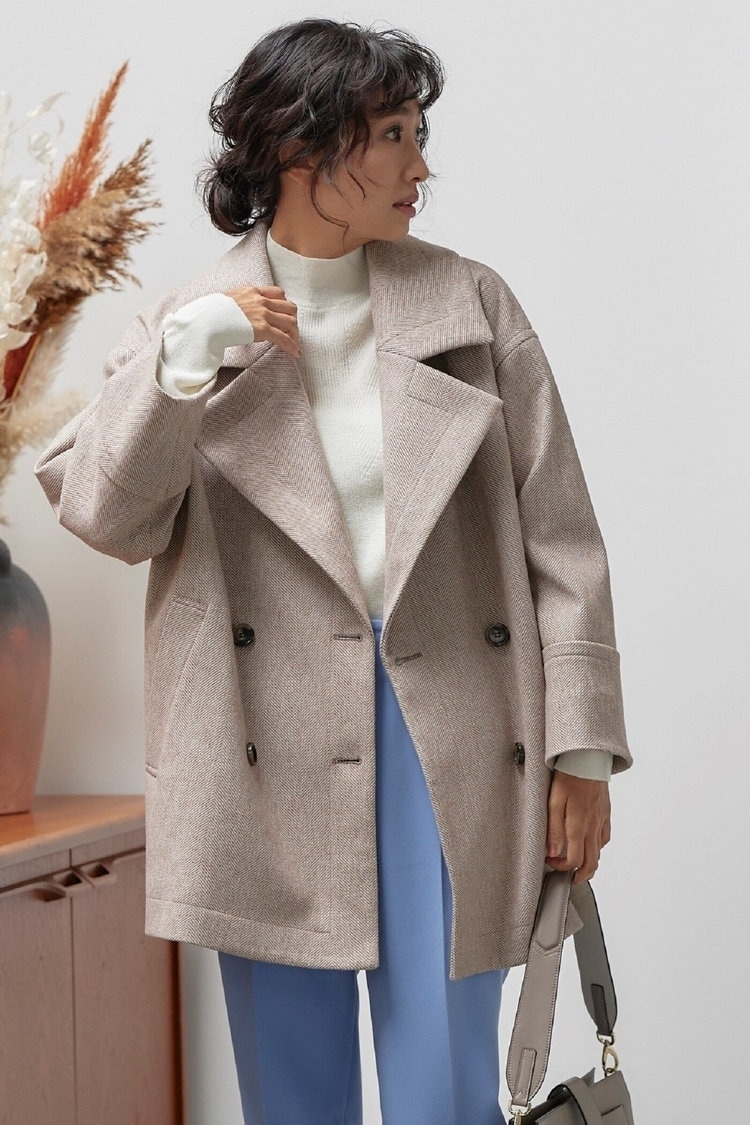 クラシカルなヘリンボーンコートはゆるっと着るのがトレンド