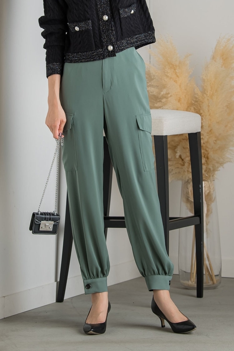 伸縮性があり動きやすいイージーパンツは、大人カジュアル派のマストアイテム。大人っぽく着こなしたいときは、サテンなどの“キレイ見えする素材”のイージーパンツを選んでみましょう。カラーはトレンドのくすみグリーンをチョイス。ツイード風のニットカーディガン、パンプスと合わせれば、きれいめな40代カジュアルスタイルの完成。ラフに着たいときは、ニットorパーカー+スニーカーの組み合わせでも大人可愛く着こなせます。