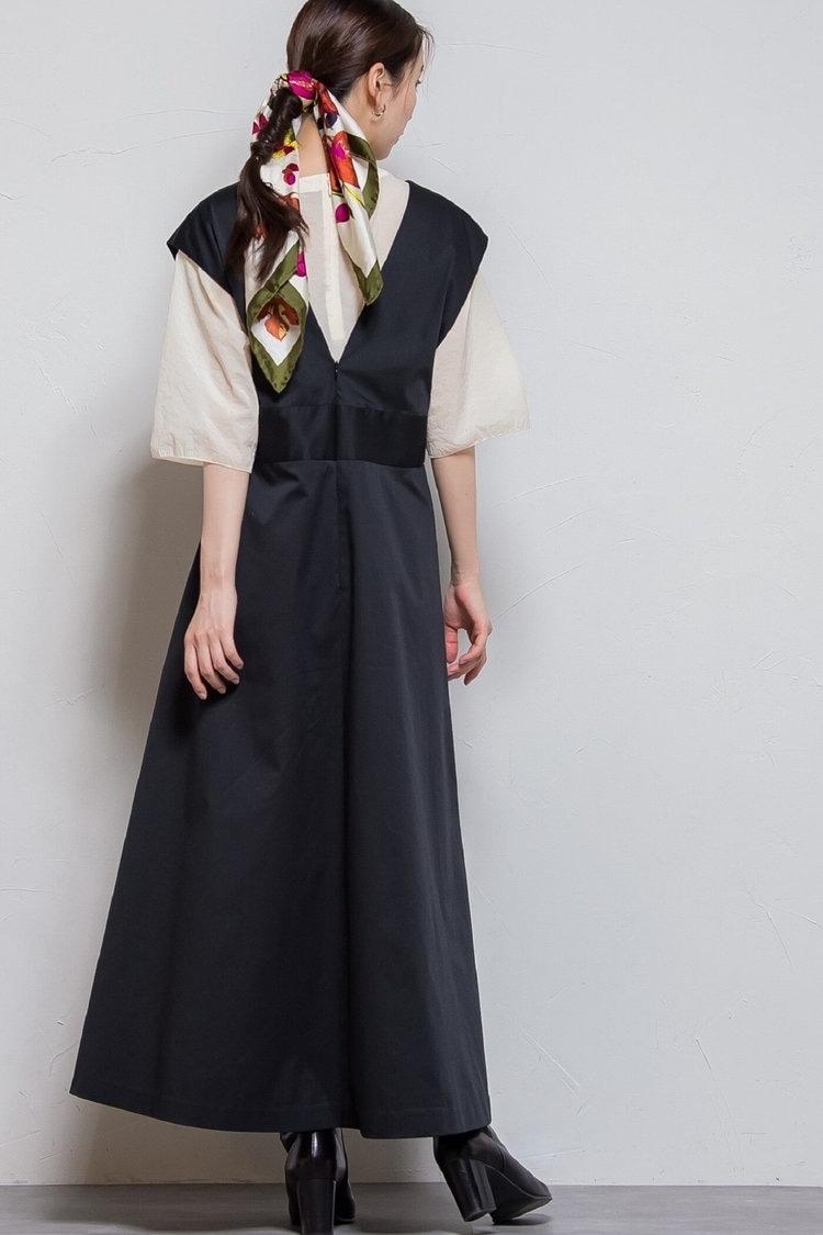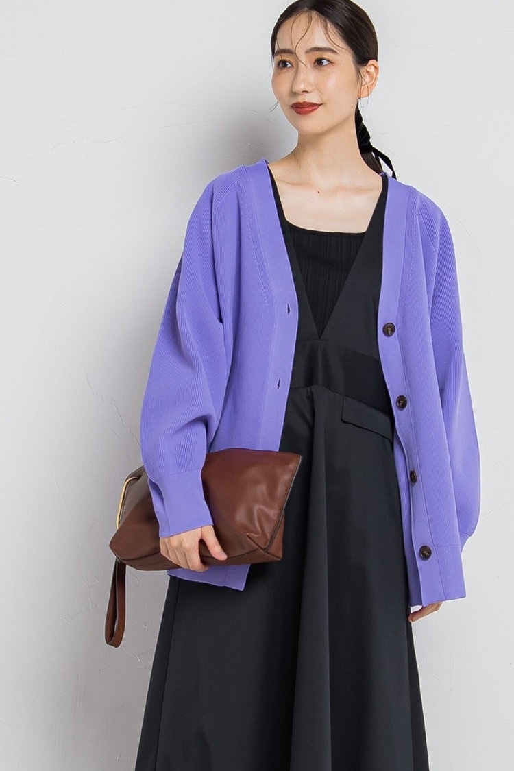 ハリのあるジャンパースカートは、オールシーズン活躍してくれる万能アイテム。深めのネックデザインになっているから、子どもっぽくならずに着こなせます。今年の冬は注目カラー「ベリーペリー(少し濃い紫)」のニットカーデ合わせがおすすめ。トレンドカラーをプラスすることで、ベーシックな着こなしが一気に旬の雰囲気へ変化します。真冬の時期はジャンパースカートのインナーをニットに替えたり、ジャケットを羽織ったりしても◎。