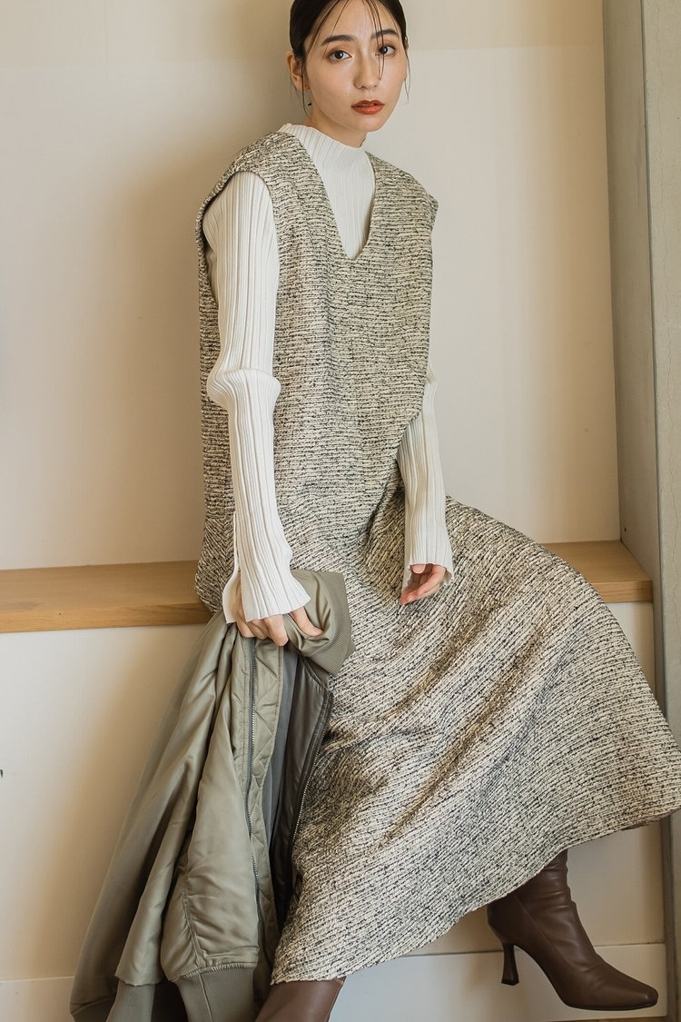 ジャンパースカートはツイード×すっきりシルエットで大人っぽく