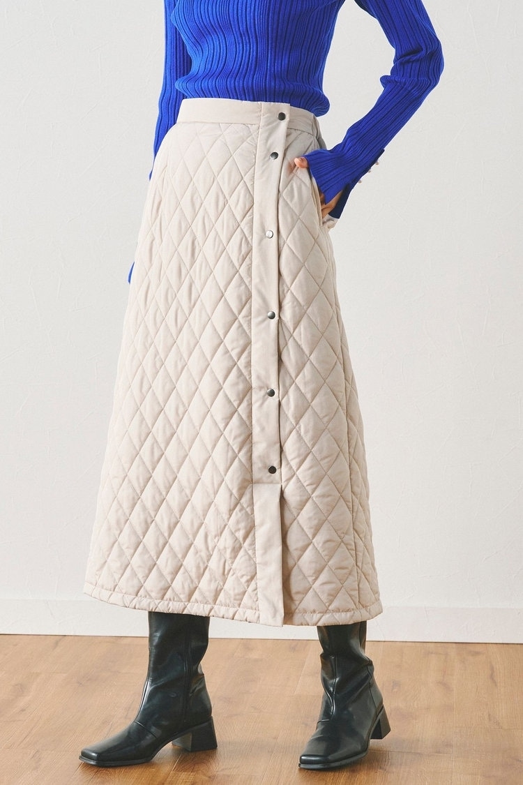 タイトトップス×キルティングスカートで旬感たっぷりに