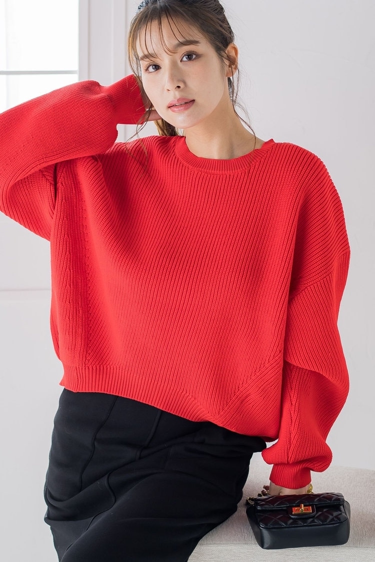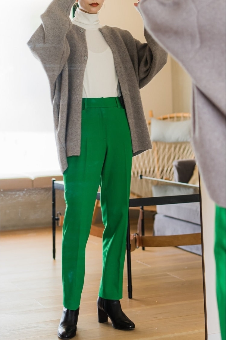 ボリューミィなニット×トレンドのカラーパンツコーデ