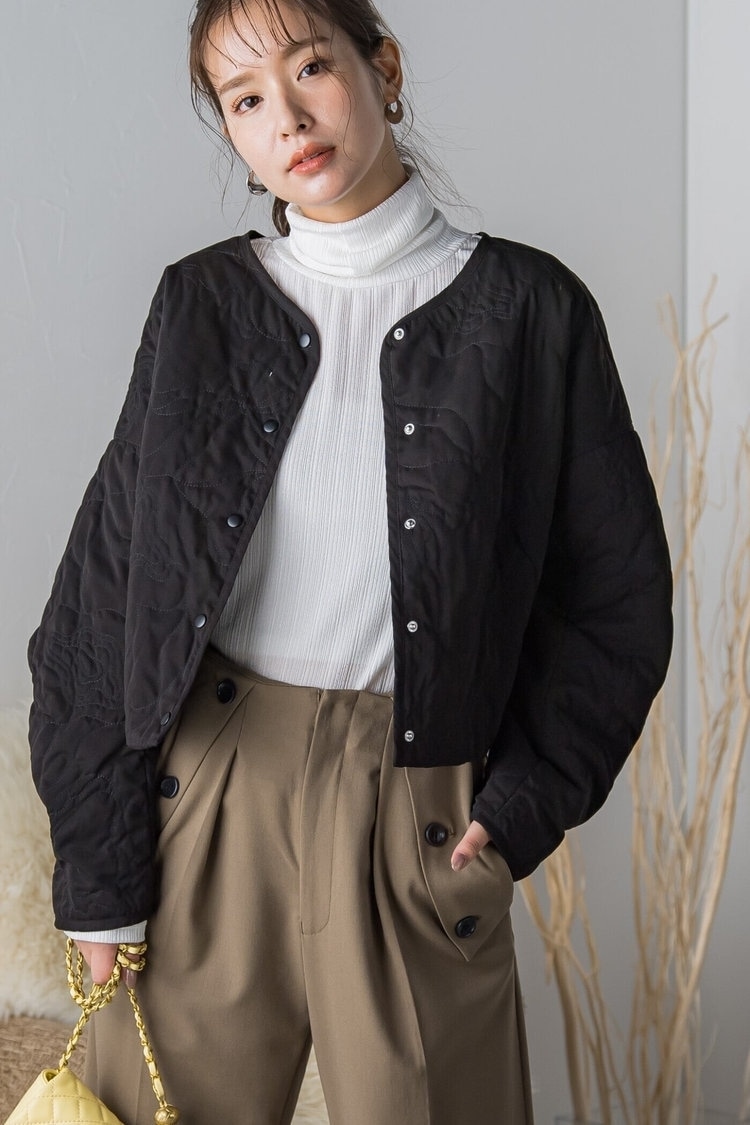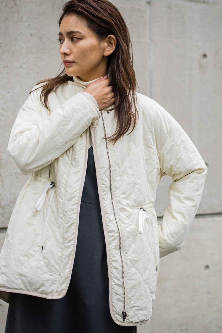 あったかスカートにはトレンドのキルティングジャケットを