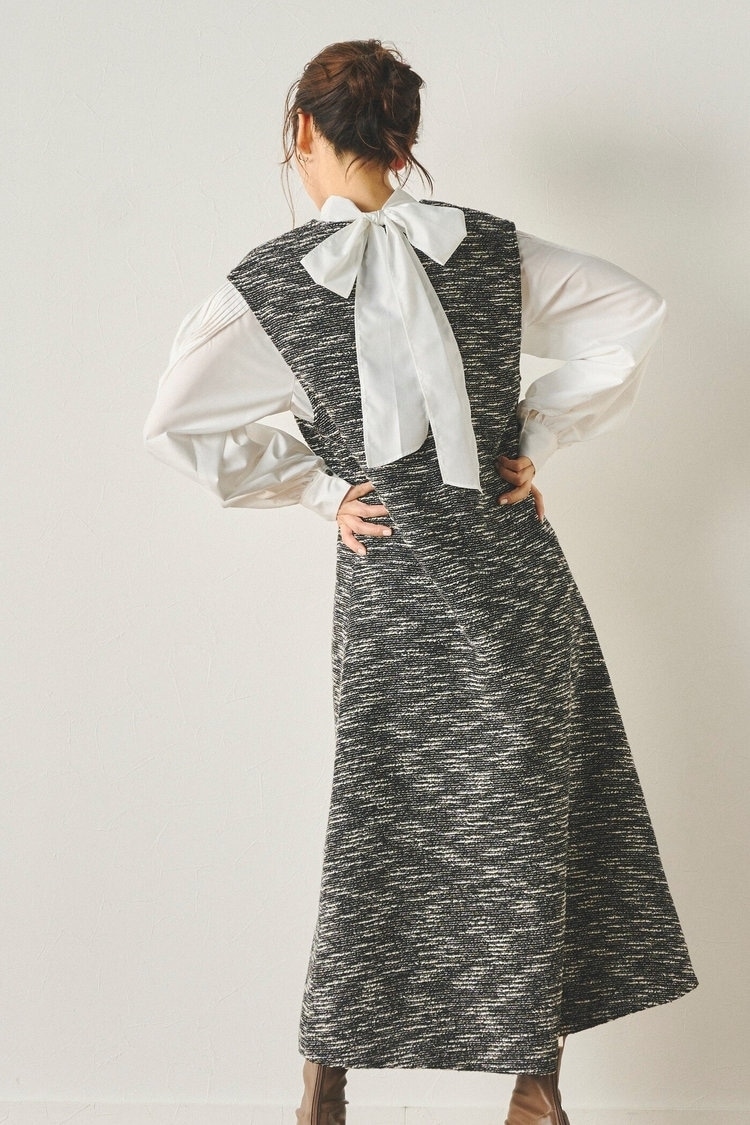定番ジャンパースカートもツイードで旬顔に