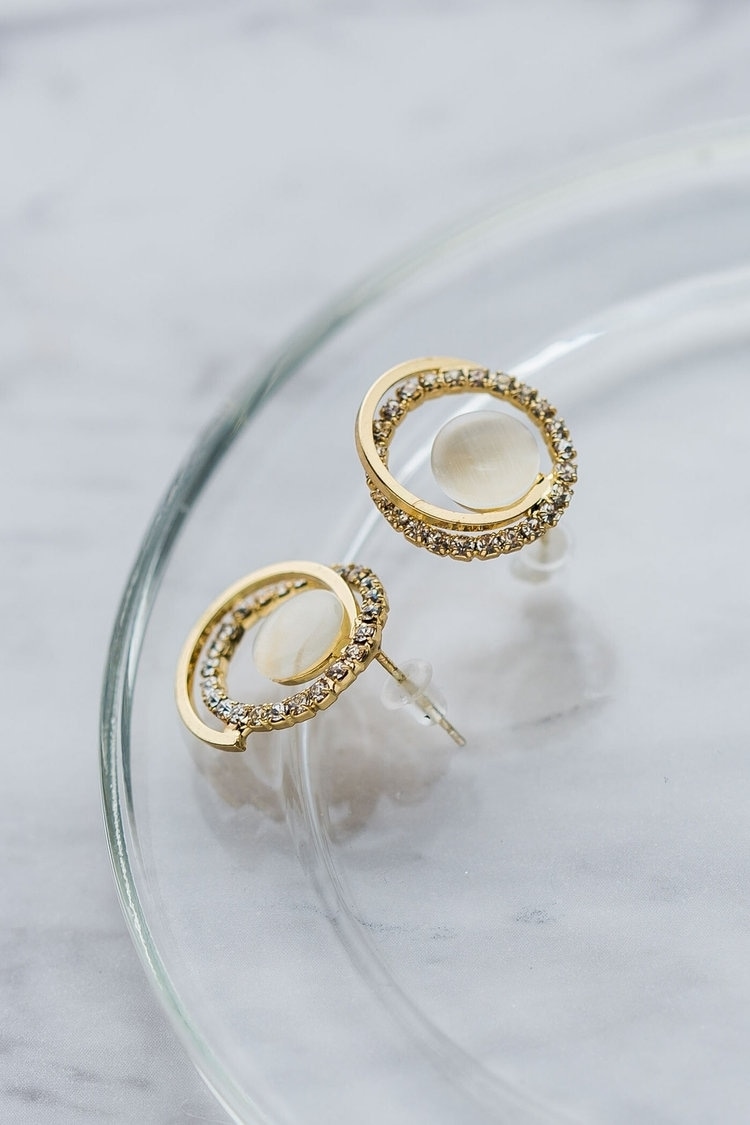 ビジューピアスで沈みがちな顔周りを華やかに