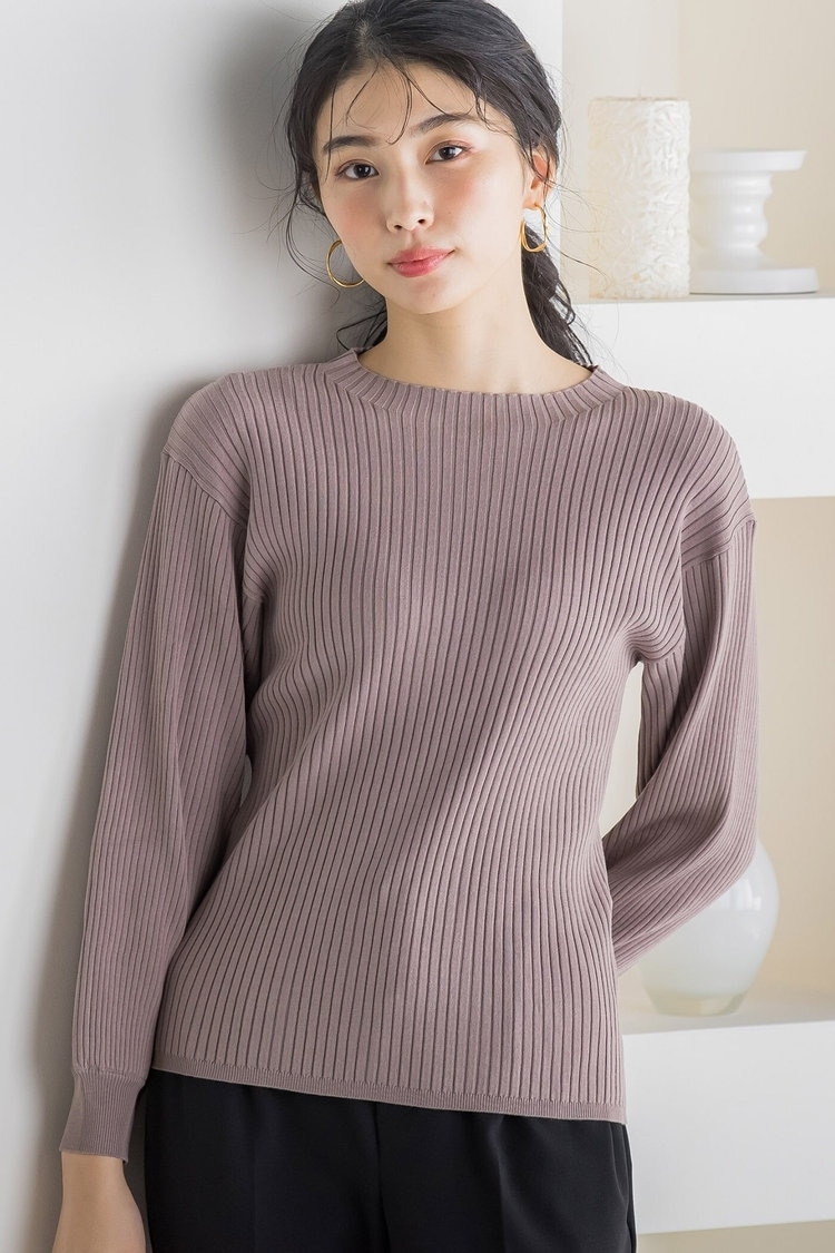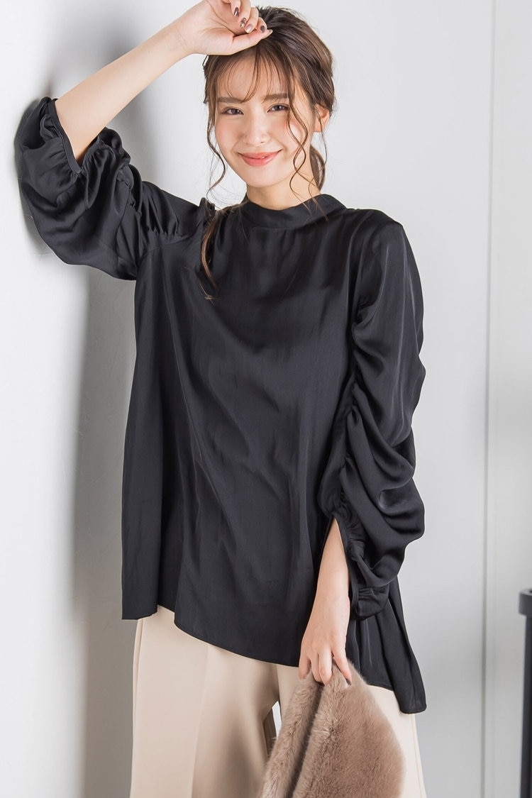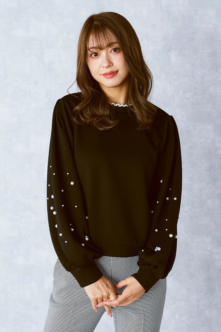 大好きな恋人や友人と過ごすクリスマスには、パールがロマンティックなトップスを主役に。ぽわんとした袖デザインや大小のランダムなパールで、フェミニンかつ華やかなスタイリングに仕上がります。ボトムスはパープルのサーキュラースカートで、品よくフェミニンに仕上げるのがポイント。スカートは圧縮メルトン素材なので暖かくハリがあり、冬らしい着こなしが楽しめます。足元はヒールパンプス合わせで、とことんレディな雰囲気に。