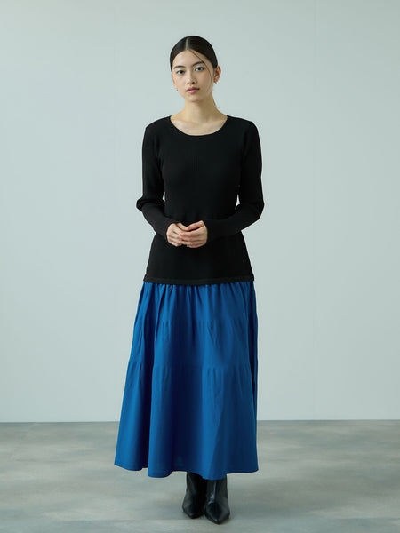 ●POINT12Gの軽量糸を使用し、見た目の印象よりも驚くほどに軽い着心地が特徴のチュニックニットとフレアスカートをコーディネートしたようなニットドレスです。トップス部分とスカート部分で編地に変化をつけて、同素材ながら異素材で切り替えたような印象の一枚です。トップス部分はリブ編みですっきり見せて、スカート部分が一本どりのふわりとした生地をイメージさせる編地になっています。アイボリーはスカート部分がネイビー配色、ブラックはスカート部分がブルーグリーン配色です。----------------------------------透け感:淡色のみややあり厚さ: 普通伸縮性:あり裏地: なしポケット: なし--------------------------------------------------------------------------------------------------洗濯方法家庭洗濯:液温は40℃を限度とし、手洗いができる。自然乾燥:日蔭の平干しがよい。アイロン:底面温度120℃を限度としてアイロン仕上げができる。ドライクリーニング:石油系溶剤による弱いドライクリーニングができる。----------------------------------------------------------------■モデル身長 165cm 着用サイズ M※画像の商品はサンプルとなりますので実際の商品と仕様、加工、サイズが若干異なる場合がございます。※お客様のモニター環境により実際のお色と多少異なる場合がございます。※撮影状況や光の当たり具合により、色合いが異なって見える場合がございます。関連ワード:VICKY ビッキー レディース 新作 大人カジュアル 大人コーデ 2025秋冬 2025AW 秋冬 秋物 秋服 フレア フレアライン 無地 長袖 合成繊維/ポリエステル
