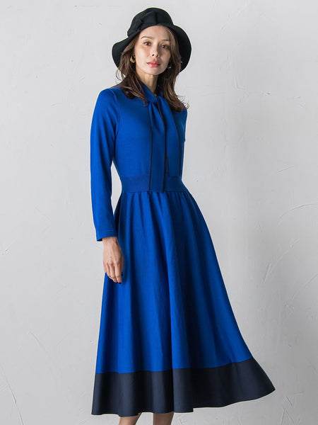 【デザインの特徴】上品で心地よい着用感が魅力的なボウタイニットワンピース。配色デザインでクラシカルなムードに仕上げています。美しいフィットアンドフレアーシルエットをニットで表現しているのでリラクシーな着用感です。日常からキレイ目なシーンでも活躍する汎用性のある1着。【素材の特徴】滑らかな肌触りが特徴のポリエステルレーヨン混紡糸を使用。ストレッチ性のある編地で編みたてたシーズンレス素材。----------------------------------------------------------------洗濯方法家庭洗濯:液温は30℃を限度とし、手洗いができる。自然乾燥:日陰の平干しがよい。アイロン:底面温度160℃を限度としてアイロン仕上げができる。ドライクリーニング:石油系溶剤による弱いドライクリーニングができる。----------------------------------------------------------------■モデル身長 169cm/着用サイズ M※画像の商品はサンプルとなりますので実際の商品と仕様、加工、サイズが若干異なる場合がございます。※お客様のモニター環境により実際のお色と多少異なる場合がございます。※撮影状況や光の当たり具合により、色合いが異なって見える場合がございます。※商品タグに記載されたサイズはヌードサイズです。実際の商品のサイズは商品情報の実寸をご確認ください。関連ワード:Viaggio Blu ビアッジョブルー レディース 新作 大人カジュアル 大人コーデ レディース キレイめ フェミニン エレガント 華やか 上品 秋 秋服 2025AW AW 2025秋冬