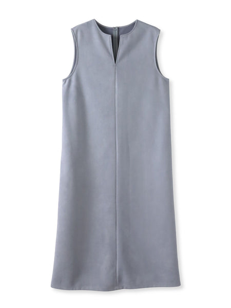 【デザイン】すとんと落ちるストレートシルエットが上品なフェイクスエードのジャンパースカート。ストレッチ性があり動きやすく、ゆとりのある設計でボディラインを拾いにくいのが特徴です。顔まわりをすっきり見せるキーネックで、インナー次第で雰囲気を変えながら着用いただけます。【素材】やわらかくしなやかなフェイクスエード素材を使用。ほどよい厚みとマットな質感で、シンプルでもきれい見えする一枚です。ストレッチが効いており、長時間の着用でも快適。手洗い可能で日常使いしやすいイージーケア素材です。※濃色は色移り防止のため、単独洗いを推奨しています。【スタイリング】タートル、ブラウス、薄手ニットなど、合わせるインナーによって印象が変わり、ロングシーズン活躍。ブーツできれいめにも、スニーカーでカジュアルにも対応します。【仕様】裏地なし/ポケットあり/後ろベンツあり(しつけ糸付き)