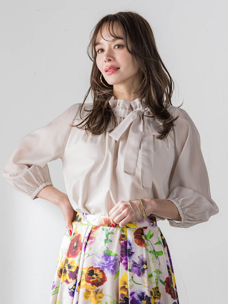 【デザインの特徴】表情感のある素材の袖とサイドリボンデザインがポイントのブラウスライクカットソー。身頃にはブラウスライクなカットソー素材を使用しているので心地よい着用感です。袖とリボンは程よい透け感と光沢・表情感のあるブラウス生地を使用。落ち感と柔らかさがあるので羽織りのインナーとしても重宝する1着です。----------------------------------------------------------------洗濯方法家庭洗濯:液温は30℃を限度とし、洗濯機で非常に弱い洗濯ができる。自然乾燥:日陰の吊り干しがよい。アイロン:底面温度160℃を限度としてアイロン仕上げができる。ドライクリーニング:石油系溶剤による弱いドライクリーニングができる。----------------------------------------------------------------■モデル身長 169cm/着用サイズ M※画像の商品はサンプルとなりますので実際の商品と仕様、加工、サイズが若干異なる場合がございます。※お客様のモニター環境により実際のお色と多少異なる場合がございます。※撮影状況や光の当たり具合により、色合いが異なって見える場合がございます。※商品タグに記載されたサイズはヌードサイズです。実際の商品のサイズは商品情報の実寸をご確認ください。関連ワード:Viaggio Blu ビアッジョブルー レディース 新作 大人カジュアル 大人コーデ レディース キレイめ フェミニン エレガント 華やか 上品 春 夏 2026春夏 2026SS 春服 夏服