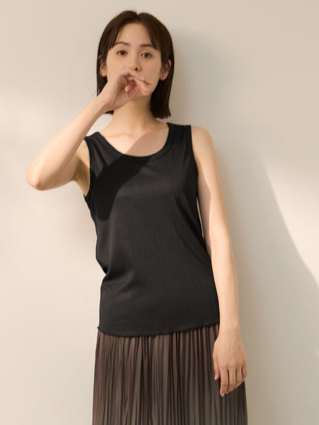 ●POINTストレッチを効かせたランダムテレコ素材を使用したノースリーブプルオーバーです。ネック周りには繊細なピコレースを効かせて、フェミニンエッセンスをプラスし、カジュアルアップの印象に。春先には、ブラウスやジャケットなどのインナーとして、気温が高くなってきたら一枚着としてのご着用が可能です。ボディラインに寄り添うシルエットですが、編地の凹凸感とポリウレタンを混紡することで安心感の感じられる着心地です。----------------------------------透け感:淡色のみややあり厚さ: 普通伸縮性:あり裏地: なしポケット: なし--------------------------------------------------------------------------------------------------洗濯方法家庭洗濯:液温は40℃を限度とし、手洗いができる。自然乾燥:日陰の吊り干しがよい。アイロン:底面温度120℃を限度としてアイロン仕上げができる。ドライクリーニング:石油系溶剤による弱いドライクリーニングができる。----------------------------------------------------------------■モデル身長 165cm 着用サイズ M※画像の商品はサンプルとなりますので実際の商品と仕様、加工、サイズが若干異なる場合がございます。※お客様のモニター環境により実際のお色と多少異なる場合がございます。※撮影状況や光の当たり具合により、色合いが異なって見える場合がございます。関連ワード:ketty ケティ レディース 新作 大人コーデ 2026春夏 2026SS 春夏 春物 春服 カットソー ポリエステル 無地 ノースリーブ オフィス 旅行 デート 通勤 ホテルディナー アフタヌーンティー