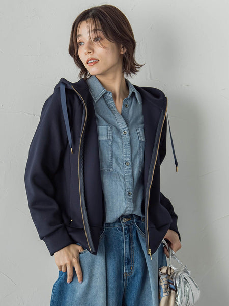 カルゼの表情が特徴のダンボール素材で、きれいめに仕上げたパーカー。ふかっとしたダンボールならではのこなれ感のあるシルエットで、軽い着心地もポイントに。ファスナーなどゴールドの附属使いでよりきれいめに着こなせます。カジュアルスタイルにはもちろん、スカートスタイルに馴染んでくれる1枚です。----------------------------------------------------------------洗濯方法家庭洗濯:液温は40℃を限度とし、手洗いができる。自然乾燥:日蔭の吊り干しがよい。アイロン:底面温度120℃を限度としてアイロン仕上げができる。ドライクリーニング:石油系溶剤による弱いドライクリーニングができる。----------------------------------------------------------------※画像の商品はサンプルとなりますので実際の商品と仕様、加工、サイズが若干異なる場合がございます。※お客様のモニター環境により実際のお色と多少異なる場合がございます。※撮影状況や光の当たり具合により、色合いが異なって見える場合がございます。※商品タグに記載されたサイズはヌードサイズです。実際の商品のサイズは商品情報の実寸をご確認ください。関連ワード:Droitelautreamont ドロワットロートレアモン レディース 新作 トレンド 大人フェミニン 2025秋冬 2025AW 秋冬 秋物 秋服 パーカー ポリエステル レーヨン ポリウレタン 無地 長袖 ジップアップパーカー