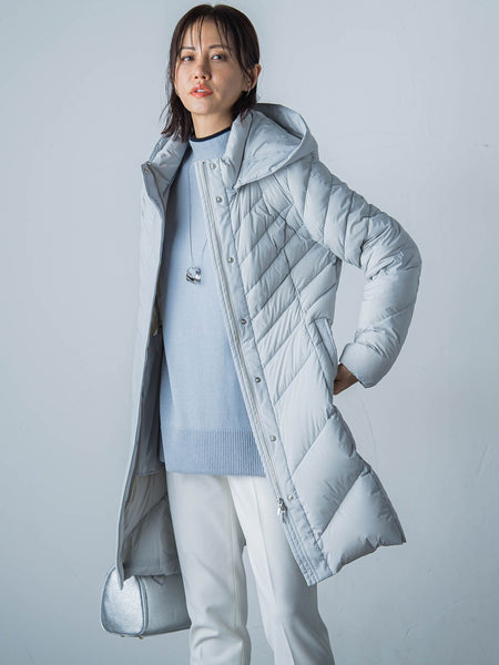 【デザイン】超軽量のストレッチ素材を使用したコンパクトですっきりとしたシルエットがポイントのロングダウンコート。身頃と袖のステッチは斜めのラインにし、視覚的にも細見えするようにしています。また、ステッチの間隔をグラデーションにし、ウエストを細く見えるようにしています。フードは取り外し出来、シンプルなスタンドカラーとしても着て頂けます。裏地も表地を使用し、ストレッチ性を活かし、上質に仕上げています。ダウンパックなしなので、かなり軽い着心地です。今年は前明き部分に持ち出しをつけたデザインでファスナー部分が隠れるデザインにアップデートしています。----------------------------------洗濯方法家庭洗濯:家庭での洗濯禁止アイロン:アイロン仕上げ禁止。ドライクリーニング:石油系溶剤による弱いドライクリーニングができる。----------------------------------■モデル身長 165cm/着用サイズ M※商品タグに記載されたサイズはヌードサイズです。実際の商品のサイズは商品情報の実寸をご確認ください。※画像の商品はサンプルとなりますので実際の商品と仕様、加工、サイズが若干異なる場合がございます。※お客様のモニター環境により実際のお色と多少異なる場合がございます。※撮影状況や光の当たり具合により、色合いが異なって見える場合がございます。関連ワード:LAUTREAMONT ロートレアモン レディース 大人カジュアル きれいめカジュアル ナチュラル きれいめ キレイめ 上品 シンプル ベーシック 通勤スタイル オフィスカジュアル キャリア オフィススタイル 2024秋冬 冬 冬服 ロング丈 合成繊維/ポリエステル ナイロン フェザー ダウン ロングダウン スタンドカラー 10~15度におすすめ