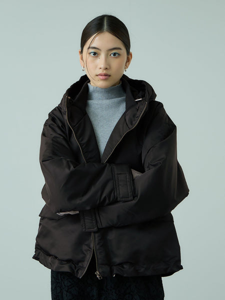 ●POINT中綿入りのナイロンMA1デザインのブルゾンです。ミリタリー系のカジュアルニュアンスが新鮮で、素材の持つ光沢感でキレイ目なボトムスとも好相性なので、オンオフ問わずコーディネートの幅を広げる一枚です。腰にかかる着丈なので、フレアスカートなどともバランスよくご着用いただけ、テイストMIXなスタイリングもお楽しみいただけます。衿高のフードデザインなので、寒さの厳しい日や風の強い日にはスタンドカラーとして防寒性を高めた着こなしが可能です。----------------------------------透け感:なし厚さ: 厚い伸縮性:なし裏地: ありポケット: あり--------------------------------------------------------------------------------------------------洗濯方法家庭洗濯:液温は40℃を限度とし、手洗いができる。自然乾燥:日蔭の吊り干しがよい。アイロン:アイロン仕上げ禁止。ドライクリーニング:石油系溶剤による弱いドライクリーニングができる。----------------------------------------------------------------■モデル身長 165cm 着用サイズ M※画像の商品はサンプルとなりますので実際の商品と仕様、加工、サイズが若干異なる場合がございます。※お客様のモニター環境により実際のお色と多少異なる場合がございます。※撮影状況や光の当たり具合により、色合いが異なって見える場合がございます。関連ワード:VICKY ビッキー レディース 新作 大人カジュアル 大人コーデ 2025秋冬 2025AW 秋冬 秋物 秋服 ミリタリー 合成繊維/ポリエステル ナイロン 中綿