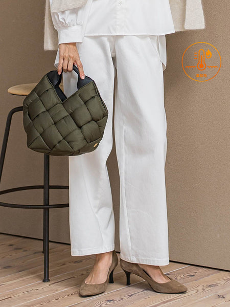 ブラックとホワイトのベーシックな2色展開で、合わせるアイテムを選ばず、きれいめにもカジュアルにも自在にスタイリング可能。
