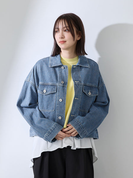 ●POINT10ozデニムとカラー(アイボリー)ツイルを使用した、ワイドシルエットのカジュアルブルゾンです。ステッチカラーをアイボリーにすることで、軽やかな印象に仕上げます。また、大き目のフラップポケットが胸元に配置され、視線が上向くことで、スタイルアップ感が感じられるデザインです。着丈は程よい短さに設定し、フレアスカートやワイドパンツなどとの着合わせもしやすくなっています。華奢なトップスやワンピースなどにあわせてカジュアルフェミニンスタイルがおすすめです。----------------------------------透け感:なし厚さ: やや厚い伸縮性:なし裏地: なしポケット: あり--------------------------------------------------------------------------------------------------洗濯方法家庭洗濯:液温は30℃を限度とし、洗濯機で非常に弱い洗濯ができる。自然乾燥:日陰の吊り干しがよい。アイロン:底面温度160℃を限度としてアイロン仕上げができる。ドライクリーニング:石油系溶剤による弱いドライクリーニングができる。----------------------------------------------------------------■モデル身長 165cm 着用サイズ M※画像の商品はサンプルとなりますので実際の商品と仕様、加工、サイズが若干異なる場合がございます。※お客様のモニター環境により実際のお色と多少異なる場合がございます。※撮影状況や光の当たり具合により、色合いが異なって見える場合がございます。関連ワード:QUEENS COURT クイーンズコート レディース 新作 フェミニン 大人コーデ 2026春夏 2026SS 春夏 春物 春服 綿/コットン デニム