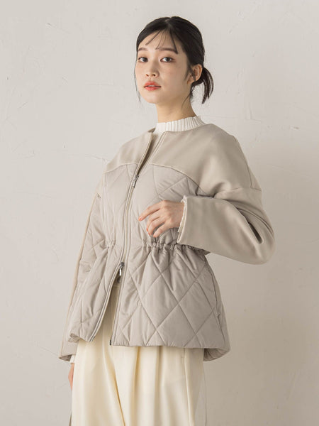 ダンボール素材×中綿キルティングの異素材ミックスジャケット。内側のドロストでウエストマークしたペプラムシルエットの着こなしが新鮮で、カジュアルな中にもほんのりフェミニンなスタイルが叶います。空気を含んだような軽い素材感で、 暖かさもありストレスフリーな着心地です。フロントのダブルジップも着こなしアレンジのポイントに。この時期から冬までデイリーに活躍してくれる1枚です。----------------------------------------------------------------洗濯方法家庭洗濯:家庭での洗濯禁止。アイロン:アイロン仕上げ禁止。ドライクリーニング:石油系溶剤による弱いドライクリーニングができる。----------------------------------------------------------------※画像の商品はサンプルとなりますので実際の商品と仕様、加工、サイズが若干異なる場合がございます。※お客様のモニター環境により実際のお色と多少異なる場合がございます。※撮影状況や光の当たり具合により、色合いが異なって見える場合がございます。※商品タグに記載されたサイズはヌードサイズです。実際の商品のサイズは商品情報の実寸をご確認ください。関連ワード:Droitelautreamont ドロワットロートレアモン レディース 新作 トレンド 大人フェミニン 2025秋冬 2025AW 秋冬 秋物 秋服 キレカジ フェミニン 合成繊維/ポリエステル レーヨン ポリウレタン