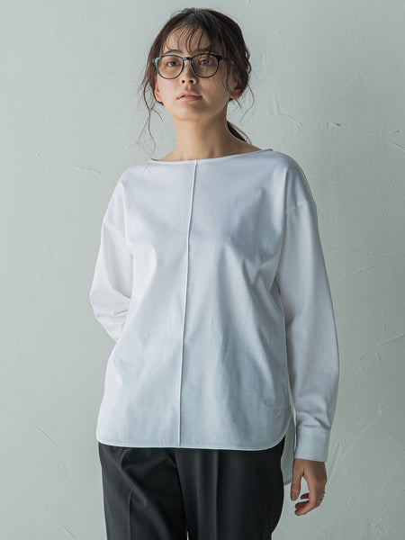 【デザインPOINT】Tシャツ以上、ブラウス未満、シンプルながらも使える一枚。ブラウスライクに仕立てた、すっきりした襟ぐり、袖口カフス、センターシームがポイント。きちんと感がありつつ、肩肘はらずに着こなせるほどよいゆとりを持たせたシルエット。前後差をつけたラウンドヘムは、どんなボトムにもマッチします。【スタイリング】一枚ではもちろん、ジレやジャケット、ジャンパースカートのインナーにも活躍します。【素材の特徴】【ZOCCON320ポンチ】微光沢があり、上品なハリ感とストレッチ性が魅力のハイゲージ・ポンチ。【スーピマコットンポンチボーダー】高級原綿スーピマコットンを使用したポンチボーダー。----------------------------------洗濯方法家庭洗濯:液温は30℃を限度とし、洗濯機で非常に弱い洗濯ができる。自然乾燥:日蔭の吊り干しがよい。アイロン:底面温度150℃を限度としてアイロン仕上げができる。ドライクリーニング:石油系溶剤による弱いドライクリーニングができる。----------------------------------■モデル身長 166cm 170cm / 着用サイズ M※画像の商品はサンプルとなりますので実際の商品と仕様、加工、サイズが若干異なる場合がございます。※お客様のモニター環境により実際のお色と多少異なる場合がございます。※撮影状況や光の当たり具合により、色合いが異なって見える場合がございます。関連ワード:MAYSON GREY socolla メイソングレイ ソコラ 大人カジュアル 2025春夏 2025SS 春 春服 Tシャツ コットン キレカジ 母の日 気温10度~15度におすすめ 気温15度~20度におすすめ