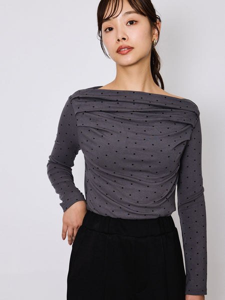 ●POINTモノトーン配色のシンプルなドット柄のジャージー(カットソー)素材を使用したニュアンス感を演出するオフショルトップスです。バスト横からギャザーが入って程よくゆとりが出るため、バスト部分〜首元にかけて立体的を出しながら、シンプルでも差のつくルックに仕上がります。モノトーン配色なので、ワードローブに1着はあるブラックカラーのボトムスとあわせていただくとデイリーシックな印象でご着用いただけます。----------------------------------透け感:淡色のみややあり厚さ: 普通伸縮性:あり裏地: なしポケット: なし--------------------------------------------------------------------------------------------------洗濯方法家庭洗濯:液温は30℃を限度とし、手洗いができる。自然乾燥:日陰の吊り干しがよい。アイロン:底面温度120℃を限度としてアイロン仕上げができる。ドライクリーニング:石油系溶剤による弱いドライクリーニングができる。----------------------------------------------------------------■モデル身長 165cm 着用サイズ M※画像の商品はサンプルとなりますので実際の商品と仕様、加工、サイズが若干異なる場合がございます。※お客様のモニター環境により実際のお色と多少異なる場合がございます。※撮影状況や光の当たり具合により、色合いが異なって見える場合がございます。関連ワード:QUEENS COURT クイーンズコート レディース 新作 フェミニン 大人コーデ 2025秋冬 2025SS 秋冬 秋物 秋服 無地 ノースリーブ 合成繊維/ポリエステル カットソー レーヨン オフショルダー ドット・水玉 長袖