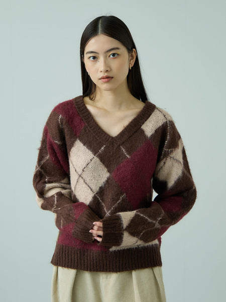 ●POINTふんわりと柔らかくエアリー感のあるモヘア風アクリル素材を使用しています。チクチク感のストレスの少ない肌触りで、温かみを感じながらも軽やかにご着用いただけます。今シーズン最注目の「チェック」はアーガイル柄を採用してクリーンで知的な印象に。プリーツスカートをあわせてスクールガール風に、ワイドパンツをあわせてニュアンスのあるリラクシーなスタイルに仕上がります。程よく身幅のあるボックスシルエットにアップデートして今風のルックスに仕上がる秘訣です。----------------------------------透け感:なし厚さ: やや厚い伸縮性:あり裏地: なしポケット: なし--------------------------------------------------------------------------------------------------洗濯方法家庭洗濯:液温は40℃を限度とし、手洗いができる。自然乾燥:日蔭の平干しがよい。アイロン:底面温度120℃を限度としてアイロン仕上げができる。ドライクリーニング:石油系溶剤による弱いドライクリーニングができる。----------------------------------------------------------------■モデル身長 165cm 着用サイズ M※画像の商品はサンプルとなりますので実際の商品と仕様、加工、サイズが若干異なる場合がございます。※お客様のモニター環境により実際のお色と多少異なる場合がございます。※撮影状況や光の当たり具合により、色合いが異なって見える場合がございます。関連ワード:VICKY ビッキー レディース 新作 大人カジュアル 大人コーデ 2025秋冬 2025AW 秋冬 秋物 秋服 ニット ポリエステル アクリル Vネック チェック 長袖