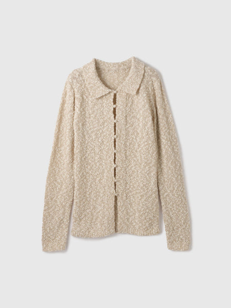 ●POINT表情豊かな糸で編み上げた、奥行きのあるスラブ素材が魅力のニットです。 立体感のある編地で陰影が加わり、動きに合わせて豊かな表情を見せて、他にはないニュアンスを生み出します。コンパクトなフォルムなので、スウェットパンツやデニムとのカジュアルコーディネートでも、モードな女性らしさを引きたてるアイテムです。----------------------------------透け感:ややあり厚さ: 普通伸縮性:あり裏地: なしポケット: なし--------------------------------------------------------------------------------------------------洗濯方法家庭洗濯:液温は30℃を限度とし、手洗いができる。自然乾燥:日蔭の平干しがよい。アイロン:底面温度120℃を限度としてアイロン仕上げができる。ドライクリーニング:石油系溶剤による弱いドライクリーニングができる。----------------------------------------------------------------■モデル身長 165cm 着用サイズ M※画像の商品はサンプルとなりますので実際の商品と仕様、加工、サイズが若干異なる場合がございます。※お客様のモニター環境により実際のお色と多少異なる場合がございます。※撮影状況や光の当たり具合により、色合いが異なって見える場合がございます。関連ワード:VICKY ビッキー レディース 新作 大人カジュアル 大人コーデ 2026春夏 2026SS 春夏 春物 春服 カーディガン コットン ポリエステル ナイロン 長袖