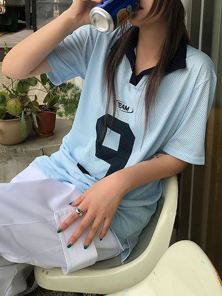 【ENIM BY VICKY/エニムバイビッキー】ファッションにはルールがない、自分の好きなスタイルを自由に。“私を私らしくする、私ウケのファッション”をテーマにユニークなデザインと実用性を兼ねたワードローブを提案トレンド性の高いスポーツMIXスタイルに抜群のアイテム。●POINTユニフォームTシャツにシアーなポロデザインを落とし込みレディライクに仕上げたトップスです。夏らしく清涼感のあるライトブルー、ホワイトの2色展開で、目を惹くナンバーデザインが特徴。配色をアクセントに、スポーティーになりすぎないデザインがポイントです。●FABRIC清涼感のあるサラッとしたメッシュ素材が、暑い夏にピッタリ!全体のサイズ感にこだわり、体型カバーはもちろん一枚でワンピーズ風にご着用も可能です。メンズも着用頂けるユニセックスアイテムです。●COORDINATEミニ丈のスカートやトレンドのレースパンツと合わせてバレエコアなガーリーコーデはもちろん、太めのパンツと合わせたストリートコーデも◎様々なコーディネートに幅広く活躍する、この夏大注目のアイテムです。----------------------------------透け感: あり厚さ: 薄い伸縮性: あり裏地: なしポケット: なし--------------------------------------------------------------------洗濯方法家庭洗濯:液温は30℃を限度とし、洗濯機で非常に弱い洗濯ができる。自然乾燥:日蔭の吊り干しがよい。アイロン:底面温度150℃を限度としてアイロン仕上げができる。ドライクリーニング:石油系溶剤による弱いドライクリーニングができる。----------------------------------※画像の商品はサンプルとなりますので実際の商品と仕様、加工、サイズが若干異なる場合がございます。※お客様のモニター環境により実際のお色と多少異なる場合がございます。※撮影状況や光の当たり具合により、色合いが異なって見える場合がございます。