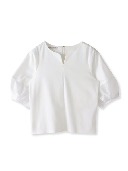 抜け感のあるオーガンジー使いが魅力的なキーネックトップス。