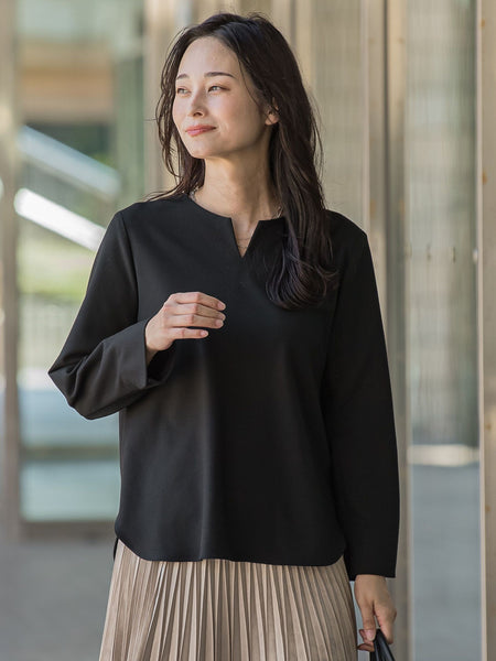 【デザイン】シンプルな中に、首元のキーネックデザインがアクセントになったブラウス。程よくゆとりを持たせたシルエットで、単品使いはもちろん同素材パンツとのセットアップスタイルもおすすめです。首の後ろはコンシールファスナー開きで着脱しやすい仕様。裏地がない分、軽やかで長いシーズン活躍します。【素材】シーズンレスに着られるTR素材を使用。程よい落ち感ときれいな表面感が特徴で、オンオフ問わず着られる万能アイテム。さらりとしたタッチでシワになりにくく、快適に過ごせるのも魅力です。【シリーズ展開】同素材のシリーズでセットアップ可能です。ブラウス(3113-57011)ジャケット(3105-57001)テーパードパンツ(3110-57018)ワイドパンツ(3110-57007)スカート(3111-57008/一部店舗限定)----------------------------------------------------------------洗濯方法家庭洗濯:液温は30℃を限度とし、洗濯機で非常に弱い洗濯ができる。自然乾燥:日陰の吊り干しがよい。アイロン:底面温度120℃を限度としてアイロン仕上げができる。ドライクリーニング:石油系溶剤による弱いドライクリーニングができる。----------------------------------------------------------------■モデル身長 165cm/着用サイズ 9号※商品タグに記載されたサイズはヌードサイズです。実際の商品のサイズは商品情報の実寸をご確認ください。※画像の商品はサンプルとなりますので実際の商品と仕様、加工、サイズが若干異なる場合がございます。※お客様のモニター環境により実際のお色と多少異なる場合がございます。※撮影状況や光の当たり具合により、色合いが異なって見える場合がございます。関連ワード:LAUTREAMONT ロートレアモン レディース きれいめカジュアル 大人カジュアル ナチュラル きれいめ キレイめ 上品 シンプル ベーシック 通勤スタイル オフィスカジュアル キャリア オフィススタイル 新作 2025秋冬 2025AW 秋冬 秋物 秋服
