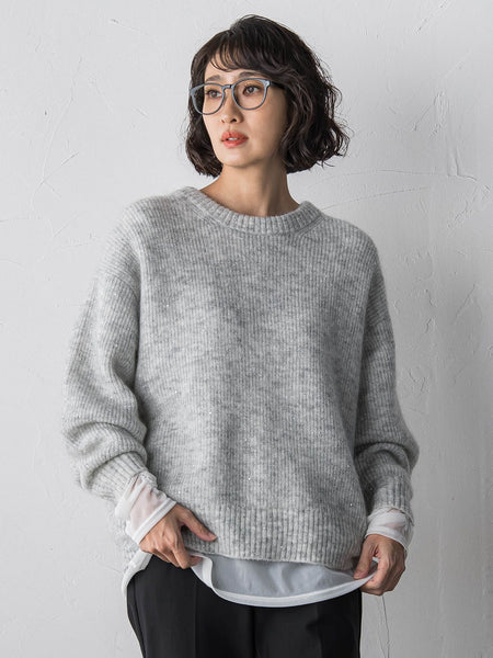 【デザインの特徴】ドラマティックな輝きと洗練されたシルエットで、冬の主役になる一着。デイリーから華やかなシーンまで、アクセサリー要らずの存在感。チクチク感の少ない極上のモヘヤが、纏うたびに優雅な気分を高めます。立体的なボリューム袖が女性らしい柔らかなムードを演出。【機能性】◆Washableご自宅での手洗いが可能【素材の特徴】生後間もない子ヤギから採取した希少なキッドモヘヤを使用。その軽やかで柔らかな毛足に、極小サイズのスパンコールを織り込みました。----------------------------------------------------------------洗濯方法家庭洗濯:液温は30℃を限度とし、手洗いができる。自然乾燥:日陰の平干しがよい。アイロン:底面温度120℃を限度としてアイロン仕上げができる。ドライクリーニング:石油系溶剤による弱いドライクリーニングができる。----------------------------------------------------------------※画像の商品はサンプルとなりますので実際の商品と仕様、加工、サイズが若干異なる場合がございます。※お客様のモニター環境により実際のお色と多少異なる場合がございます。※撮影状況や光の当たり具合により、色合いが異なって見える場合がございます。※商品タグに記載されたサイズはヌードサイズです。実際の商品のサイズは商品情報の実寸をご確認ください。関連ワード:la.f… ラ エフ レディース 新作 大人コーデ シンプル フォーマル モード マニッシュ 2025秋冬 2025AW 秋冬 秋物 秋服