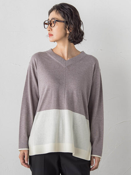 【デザインの特徴】きちんとした印象と暖かさを両立。着回し力とスタイルアップを叶える洗練ニット。上質なウールを50%ブレンドした糸をハイゲージで丁寧に編み上げることで暖かさを持ちながら、もたつきのないすっきりとした着心地。配色切替とVネックが身体を華奢に見せ、着るだけでスタイルアップを叶えます。【機能性】◆Washableご自宅での手洗いが可能----------------------------------------------------------------洗濯方法家庭洗濯:液温は30℃を限度とし、手洗いができる。自然乾燥:日陰の平干しがよい。アイロン:底面温度120℃を限度としてアイロン仕上げができる。ドライクリーニング:石油系溶剤による弱いドライクリーニングができる。----------------------------------------------------------------※画像の商品はサンプルとなりますので実際の商品と仕様、加工、サイズが若干異なる場合がございます。※お客様のモニター環境により実際のお色と多少異なる場合がございます。※撮影状況や光の当たり具合により、色合いが異なって見える場合がございます。※商品タグに記載されたサイズはヌードサイズです。実際の商品のサイズは商品情報の実寸をご確認ください。関連ワード:la.f… ラ エフ レディース 新作 大人コーデ シンプル フォーマル モード マニッシュ 2025秋冬 2025AW 秋冬 秋物 秋服
