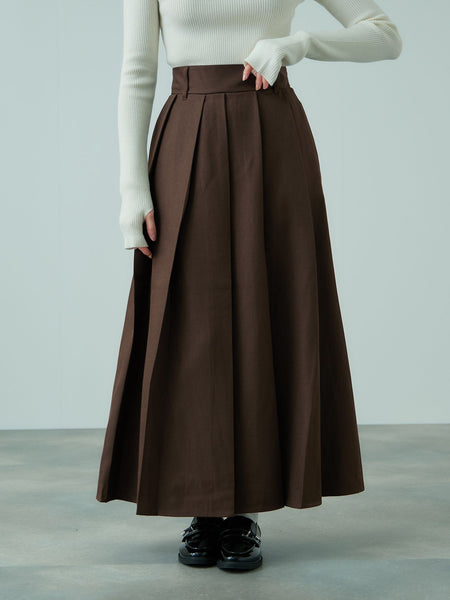 ●POINT今シーズン人気の太め幅で高さの出ない一方向に折りたたまれたワンウェイプリーツです。光による陰影が一方向に規則正しく繰り返されるプリーツデザインなのでクリーンでミニマルな印象に。また、サイドスリットを入れてモードな印象をプラスしています。たっぷりと生地を使って、プリーツの動きが着映える一枚です。ベルトループ付きで端正な印象なのに、バックウエストはゴム仕様でイージーな履き心地に。トップスをタックインしてベルトをつけていただくとスタイリングが引き締まりおすすめです。----------------------------------透け感:なし厚さ: 普通伸縮性:なし裏地: なしポケット: あり--------------------------------------------------------------------------------------------------洗濯方法家庭洗濯:液温は40℃を限度とし、手洗いができる。自然乾燥:日蔭の吊り干しがよい。アイロン:底面温度120℃を限度としてアイロン仕上げができる。ドライクリーニング:石油系溶剤による弱いドライクリーニングができる。----------------------------------------------------------------■モデル身長 165cm 着用サイズ M※画像の商品はサンプルとなりますので実際の商品と仕様、加工、サイズが若干異なる場合がございます。※お客様のモニター環境により実際のお色と多少異なる場合がございます。※撮影状況や光の当たり具合により、色合いが異なって見える場合がございます。関連ワード:VICKY ビッキー レディース 新作 大人カジュアル 大人コーデ 2025秋冬 2025AW 秋冬 秋物 秋服 ポリエステル 無地 ゴム プリーツスカート