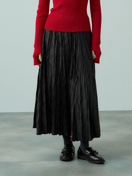 ●POINT光沢感が控えめのサテンのテキスタイルに、洗いざらしのような自然なシワ感を出すワッシャー加工を施したプリーツスカートです。イレギュラーなプリーツ感がサテンの上品さにカジュアル感をプラスします。ウエストはゴム仕様でストレスの少ない履き心地です。ショートブーツにあわせてキレイ目なスタイリングに、スニーカーをあわせたカジュアルスタイルにと幅広いコーディネートに対応します。ワントーンコーデでもテキスタイルの持つ光沢感と立体感で陰影のある奥行きのあるスタイルに。----------------------------------透け感:なし厚さ: 普通伸縮性:なし裏地: ありポケット: なし--------------------------------------------------------------------------------------------------洗濯方法家庭洗濯:液温は30℃を限度とし、手洗いができる。自然乾燥:日蔭の吊り干しがよい。アイロン:アイロン仕上げ禁止。ドライクリーニング:石油系溶剤による弱いドライクリーニングができる。----------------------------------------------------------------■モデル身長 165cm 着用サイズ M※画像の商品はサンプルとなりますので実際の商品と仕様、加工、サイズが若干異なる場合がございます。※お客様のモニター環境により実際のお色と多少異なる場合がございます。※撮影状況や光の当たり具合により、色合いが異なって見える場合がございます。関連ワード:VICKY ビッキー レディース 新作 大人カジュアル 大人コーデ 2025秋冬 2025AW 秋冬 秋物 秋服 ポリエステル 無地 ゴム プリーツスカート