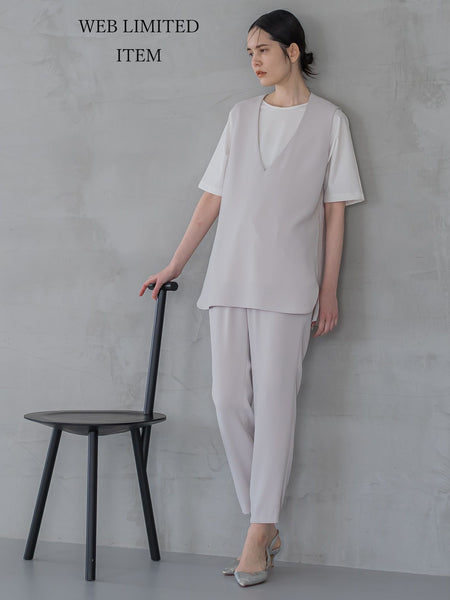 【デザインの特徴】微光沢が品のあり、2wayに伸縮するダブルクロス素材を使用したイージーパンツ。ウェストはドローストリング仕様ではきやすく、ストレスフリー。カジュアルにもきれいめにもマッチするデザインに仕上げています。裾をほど良く絞った美しいシルエットも魅力。サイドには便利なシームポケット付き。【同シリーズ】ジレブラウス(3613-41806)【機能性】◆Washableご自宅での洗濯機洗いが可能なイージーケア【素材の特徴】伸縮性のあるポリエステルを使用した4WAYストレッチの二重織素材になります。適度なドレープ性と反発感、弾力性があり、仕立て映えのする素材で、イージーケア性にも優れた素材となっております。季節を問わず着用シーンも長いのも嬉しいポイントです。----------------------------------洗濯方法家庭洗濯:液温は40℃を限度とし、洗濯機で弱い洗濯ができる。自然乾燥:吊り干しがよい。アイロン:底面温度150℃を限度としてアイロン仕上げができる。ドライクリーニング:石油系溶剤による弱いドライクリーニングができる。----------------------------------■モデル1身長 173cm/着用サイズ 9号■モデル2身長 171cm/着用サイズ 9号※画像の商品はサンプルとなりますので実際の商品と仕様、加工、サイズが若干異なる場合がございます。※お客様のモニター環境により実際のお色と多少異なる場合がございます。※撮影状況や光の当たり具合により、色合いが異なって見える場合がございます。※商品タグに記載されたサイズはヌードサイズです。実際の商品のサイズは商品情報の実寸をご確認ください。関連ワード:la.f… ラ エフ WEB限定 イージーパンツ ジョガーパンツ ドロストパンツ ポリエステル シンプル フォーマル モード マニッシュ 無地 紐 ゴム セットアップ可 シーズンレス 入卒園 入園 卒園 入学 卒業 2024春夏 気温10度〜15度におすすめ