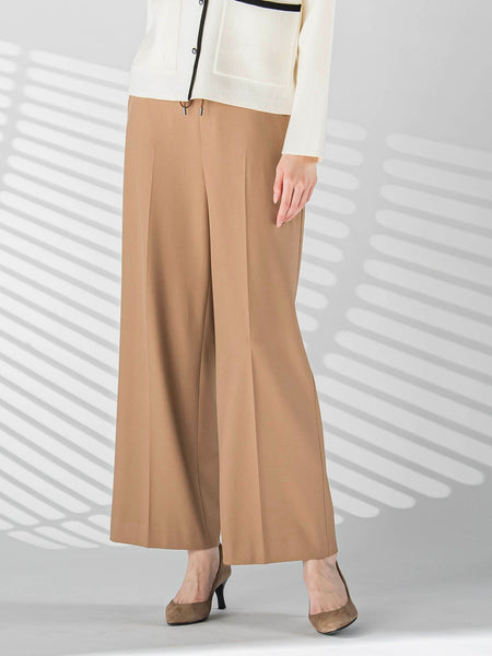 【デザインの特徴】ストレッチ性に優れた裏起毛素材を使用したきれい見えイージーワイドパンツ。ドローストリングデザインをきかせたカジュアルなデザイン性ながら、美脚にこだわったすっきりワイドシルエットで、お仕事はもちろん、様々なシーンでご活用していただけます。【機能性】◆吸湿発熱【素材の特徴】50/2のポリエステル/レーヨンと、アクリル/レーヨンの機能糸入りの2WAYポリエステル/レーヨン/ポリウレタン素材です。糸番手が細いので糸質が良く上品な見え方です。----------------------------------洗濯方法家庭洗濯:液温は30℃を限度とし、洗濯機で非常に弱い洗濯ができる。自然乾燥:日蔭の吊り干しがよい。アイロン:底面温度110℃を限度としてアイロン仕上げができる。ドライクリーニング:石油系溶剤による弱いドライクリーニングができる。----------------------------------※画像の商品はサンプルとなりますので実際の商品と仕様、加工、サイズが若干異なる場合がございます。※お客様のモニター環境により実際のお色と多少異なる場合がございます。※撮影状況や光の当たり具合により、色合いが異なって見える場合がございます。※商品タグに記載されたサイズはヌードサイズです。実際の商品のサイズは商品情報の実寸をご確認ください。関連ワード:la.f… ラ エフ 2024秋冬 2024AW 冬 冬服 ロングパンツ ワイドルーズ スタンダード 10分丈 ポリエステル レーヨン アクリル シンプル フォーマル モード マニッシュ ワイドパンツ イージーパンツ